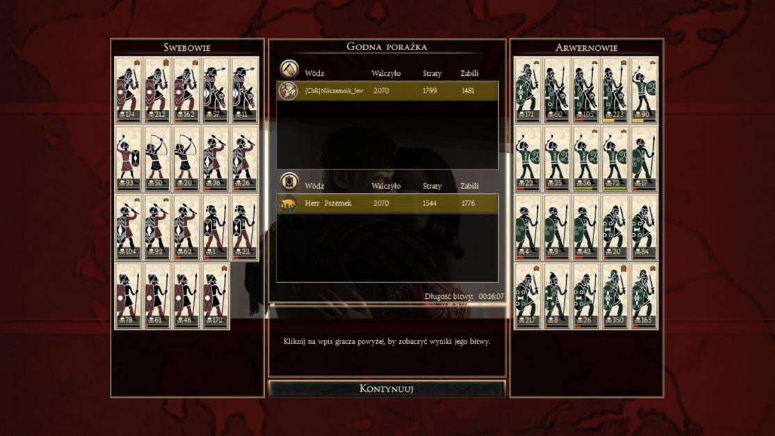 Zwycięzca przesyła screen z poziomem strat, lub replay.