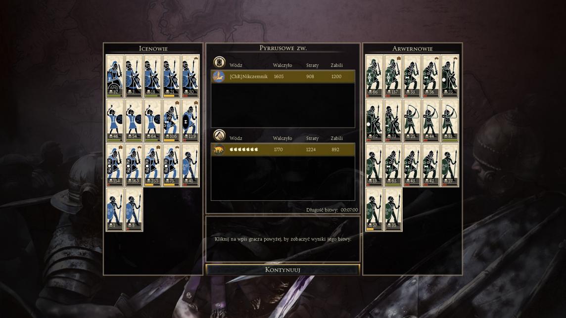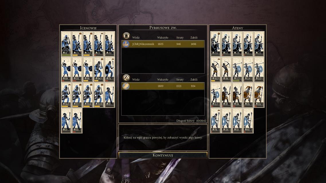 Poza tym stoczyłem dwa wygrane mecze z 阿尔卑斯的企鹅 ( heh :drunk: ) oraz Flamingo. Chińczyk od Arwernów był dziwny, a na dodatek łamał zasady. Flamingo stawiał się jak mógł Syrakuzami, natomiast szlachta go wycięła. No może trochę kawalerią źle zagrał i dał niepotrzebną kampańską.
