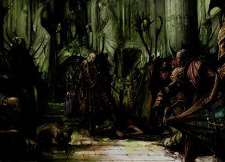 Kończąc ten długi wstęp chciałbym wspomnieć jeszcze o linii krwi, zwanej Nekrarchami. Nekrarchowie to wampiry-czarodzieje, w prastarym języku oznacza to "żywe zwłoki". Założycielem tej linii był Wampir W'soran, który wyróżniał się ponad inne Wampiry znajomością śmiercionośnych zaklęć, poświęcając całe swoje nie-życie na studiowaniu sztuk magii. Pobierał on swe nauki od samego Nagasha, przekazując je później swym uczniom, również Wampirom. Jego najgorliwszym studentem był Melkhior, obmierzły podlec, który w końcu zabił swego mistrza i wykradł Księgę Nagasha. Zaczął prowadzić swe eksperymenty zarówno na żywych... jak i martwych, prosto ze swej opuszczonej, mrocznej fortecy. Odwzorowywał on obrazy świata, w którym zabrakłoby miejsca dla żywych, a ich miejsce zajęliby Nieumarli. Melkhior miał swych uczniów, wśród których największe zaangażowanie przejawiał Zachariasz. Niewiele wiadomo o życiu Zachariasza przed staniem się wampirem. Wiadomo, że pobierał nauki prosto od nekromanty z linii Nagasha - samego Dietera Helsnichta i prawdopodobnie dzięki jego wpływowi poznał on miejsce, gdzie ukrywał się Melkhior. Chciał ukraść księgę Nagasha i wymknąć się szybko z kryjówki wampira. Jednakże został złapany tuż przy wejściu do siedziby Melkhiora, ale nie zginął. Wampir nałożył na jego usta krwawy pocałunek, zamieniając go w wampira. Od tego czasu co noc wstawali ze swych grobowców i każdej nocy Melkhior mówił Zachariaszowi, jak znudziło go jego towarzystwo i odgrażał się, że zabije go przed świtem. Jednak Zachariasz był pilnym uczniem, nieraz zaskakując Melkhiora swym głodem wiedzy, odkładając swą możliwą śmierć na kolejny dzień. W końcu jednak, gdy Melkhior zwariował i zaczął wyładowywać swą nienawiść na swych żywych sługach, Zachariasz zakradł się do komnaty swego pana. Zagłębił się w lekturze i jeszcze czytał, gdy nagle do sali wszedł Melkhior. Gdy tylko spostrzegł, co się dzieje, postanowił rozprawić się ze swym dawnym uczniem. Ożywiony krwią swych sług Melkhior okazał się zbyt silny, przez co ciężko ranny Zachariasz musiał uciec z pola walki. Ścigany ponad rok przez sługi szalonego Nekrarchy Zachariasz nie mógł znaleźć sobie wolnego miejsca. Gdy w końcu odnalazł pewną pieczarę, gdzie skrył się przed gniewem swego pana, zasnął w głęboki sen. Fart (dla Zachariasza) był taki, że jaskinię nawiedziła niczego nie podejrzewająca Czarna Smoczyca, która założyła tu swoje leże. Nagle jednak nieumarły się przebudził i odczuwając ogromne pragnienie, znalazł odsłonięte ciało smoczycy i zatopił w nim kły. Pijąc przez kilka najbliższych miesięcy krew smoka, Zachariasz rósł w siłę. W końcu jednak ożywił smoka i wyruszył na nim na spotkanie przeciwko swemu dawnemu panu. Walka, do której doszło między mistrzem, a uczniem, doprowadziła do zniszczenia wieży Melkhiora. Nie wiadomo jednak, cóż stało się z uczniem W'sorana. Możliwości są dwie: