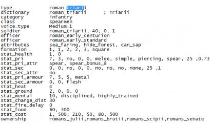 Raczej o tą, może jest inne triari jeszcze? A i po zmianach usuwaj plik map.rwm z katalogu kampanii w folderze world, to wtedy wczyta wprowadzone zmiany, choć dziwne bo z jedynką triari powinni się rekrutować w turę.