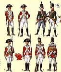 Pierwszy obrazek to początek XVIII wieku, czyli okres Johna Churchilla. Drugi i trzeci to połowa XVIII wieku. Następnie okres wojny siedmioletniej i na samym końcu obrazki z II połowy XVIII wieku. :) Czwarty rysunek od końca to gwardziści, od góry stoją chronologicznie: od początku do końca wieku na dole. 6 i 7 obrazek od końca to wojska szkockie, również chronologicznie od początku do końca wieku.