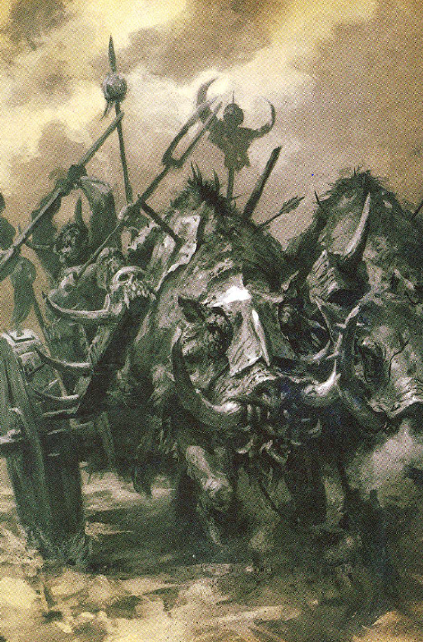 Hordy Zielonoskórych, nazywane ŁAAA! zrzeszają ogromną liczbę różnego rodzaju Zielonoskórych, począwszy od Orków, przez różnego rodzaju Gobliny, aż do potężnych monstrów jak Giganty, Wywerny czy Pająki Arachnaroki. Kto jednak sprawuje władzę nad taką hordą? Oczywiście Herszt. Hersztowie są najsilniejszymi ze swego plemienia wojownikami, którymi kieruje największa wola walki i zabijania w imię Gorka i Morka. Stale jednak muszą rywalizować z innymi pretendentami do władzy nad plemieniem, bądź całym ŁAAA! i by utrzymać władzę muszą stale wygrywać z przeciwnikami swego plemienia, bądź wrogami swej rasy. Niżej od Hersztów są Duzi Szefowie, sprawujący władzę nad mniejszymi częściami hordy, z kolei jeszcze niżej są Szefowie, dużo mniejsi władzą dowódcy armii, należący do bohaterów. Część Hersztów praktykuje walkę pieszo, druga część z kolei uwielbia walczyć na wierzchowcu, a ich mają co najmniej kilka. Począwszy od niesfornych, dosiadanych przez innych Orków, dzików, poprzez dzicze rydwany i w końcu na wywernach skończywszy. Hersztów posiada każde plemię Orków, Dzikich Orków i Czarnych Orków.