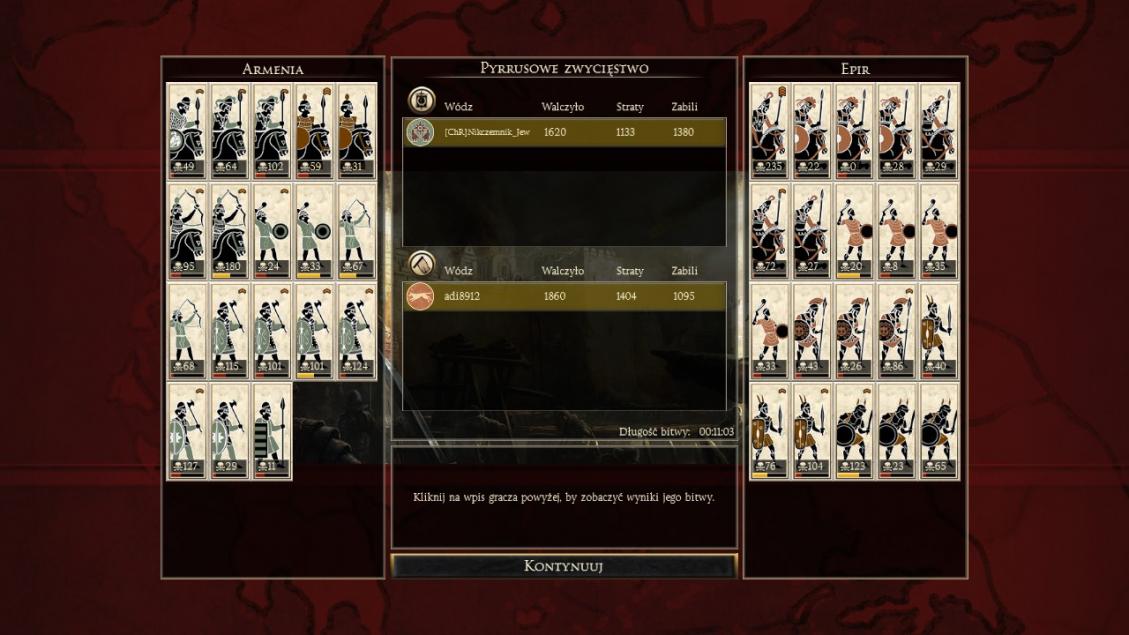 Frakcje : Zwycięskie Armenie i pechowe Epiry po obu stronach.