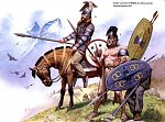 Nieco śmiesznie rysowane obrazki antycznych wojowników, chyba po hiszpańsku ale idzie zrozumieć: